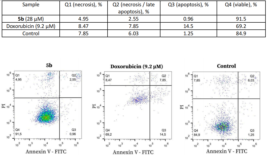 流式细胞术分析表明,5b通过诱导G2/M期阻滞(而非凋亡)抑制癌细胞增殖。